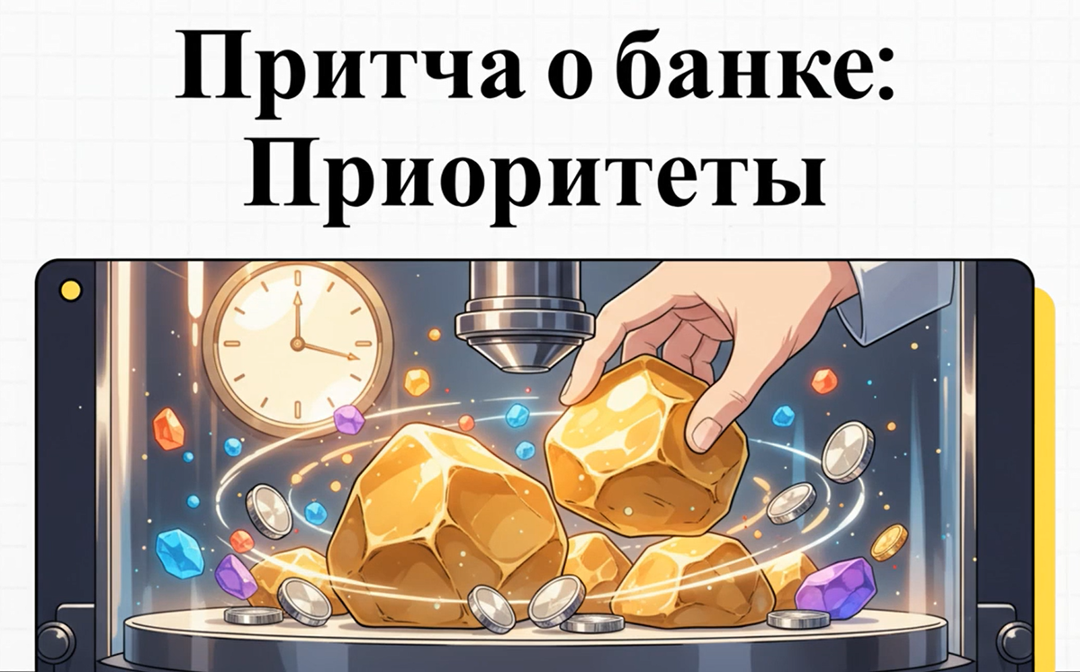 На сцену выходит спикер. Никаких слайдов. Никаких графиков. Он просто ставит на стол огромную, пустую стеклянную банку.