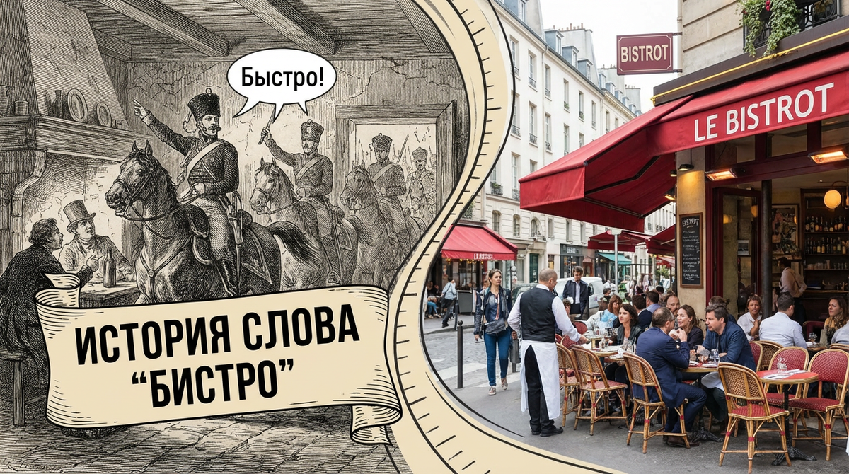 Слово «бистро» в русском звучит уютно: маленькое кафе, простая еда, быстро и без церемоний. А вокруг его происхождения давно живёт легенда — настолько красивая, что её хочется рассказывать даже тем, кто не любит лингвистику. Легенда такая: когда русские войска вошли в Париж в 1814 году, солдаты якобы торопили официантов криком «быстро! быстро!», и французы запомнили слово, превратив его в bistro. История отличная. Почти кино. Но с языком часто бывает так: чем история красивее, тем внимательнее стоит проверить даты. Почему в неё верят: Но у версии есть слабое место — хронология. Главный аргумент против «солдатской» версии — то, что слово bistro как обозначение заведения/трактира фиксируется во французских источниках существенно позже событий 1814 года (в употреблении оно становится заметным ближе к концу XIX — началу XX века). Если бы слово действительно родилось сразу после пребывания русских войск, оно, скорее всего, «всплыло» бы в текстах раньше — в мемуарах, газетах, городских заме