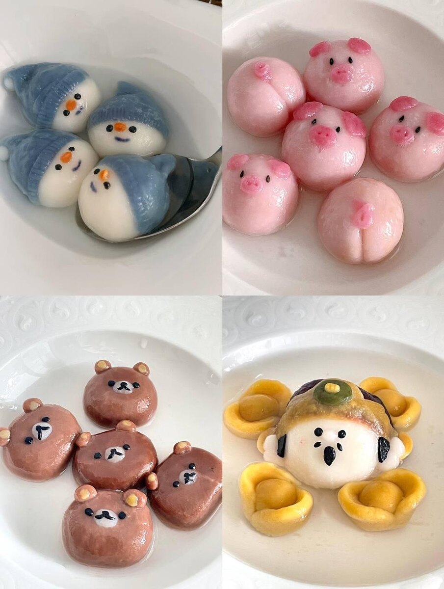 Это традиционное угощение к празднику Дунчжи, дню зимнего солнцестояния. Кроме классического рецепта, всё чаще встречаются и фантазийные версии. Шарики лепят в форме снеговиков, поросят и других фигур — выглядит почти как съедобное искусство ⛄️🐷 Хотелось бы вам пробовать танъюань?