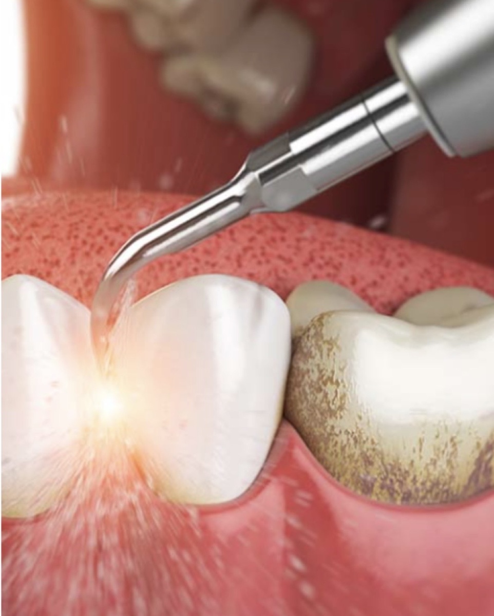 - Ультразвуковая чистка - разрушает и отделяет камень с помощью вибраций. Удаляет отложения даже из-под десны.