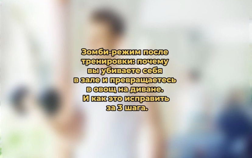 Вы выкладываетесь в зале на 200%: льётся пот, дрожат ноги, вы чувствуете себя героем. Но через пару часов после душа на вас накатывает тотальное опустошение.Нет сил даже на разговор, только диван, сериал и пульт. Знакомо? Поздравляем, вы вогнали себя в зомби-режим. Это не признак хорошей тренировки. Это признак того, что вы системно разрушаете свою энергию и мешаете своему же прогрессу.Давайте разберёмся, кто виноват и что делать. 🧠⚡