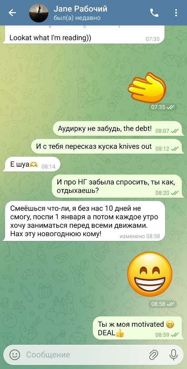 😁 Для них занятия - не работа, а потому угроза пере/выгорания - отсутствует. Ну а я что, желание ученика - закон, так что будем вкатываться в новый 2026й, спикая инглиш нонстопно⚡️ А что для вас НГ праздники? Оливьешно-сериальный марафон, фэйс-гирлянда из лиц родственников в гостях или может работная работа, которая не перешла на Федота? Колитесь-делитесь😋 #ученики #личное
