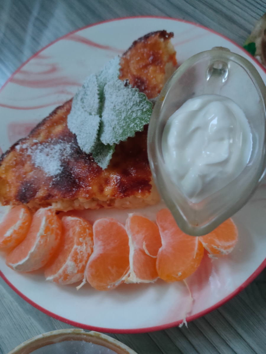 Доброго дня всем вам, милые дамы , верные спутники моего канала, а также те, кто из интереса заглядывает на его страницы! Меня зовут Надежда, и я приглашаю Вас на мою кухню, где покажу Вам мое меню на день. Утро сегодня опять морозное. Ночью было - 32 градуса. Днем будет повышение, а к вечеру температура поднимется до - 12 - 11 градусов. Вот такие качели у нас на Урале. только вчера сын с невесткой все почистили от снега, а днем опять повалил большими хлопьями. буду убирать, если никто из помощников не приедет , уже завтра. Завтрак у меня уже готов, вчера специально готовила творожную запеканку с курагой на 2 завтрака, одну часть заморозила. Итак, завтрак: творожная запеканка с курагой. отдельно подала сметану, дополнила еще мандарином. Запеканка получилась отличная. Сделала еще десерт из замороженной садовой земляники со сметаной и сахарной пудры, заварила черный кофе, к кофе взяла печенье и конфету Апельсиновое суфле. Получился вкусный и полезный завтрак. После завтрака приступила к