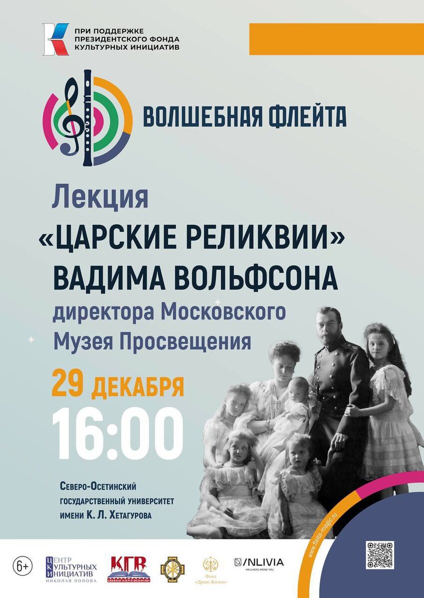 29 декабря 2025 года состоится лекция «Царские реликвии» во Владикавказе в Северо-Осетинском государственном университете - директора Музея