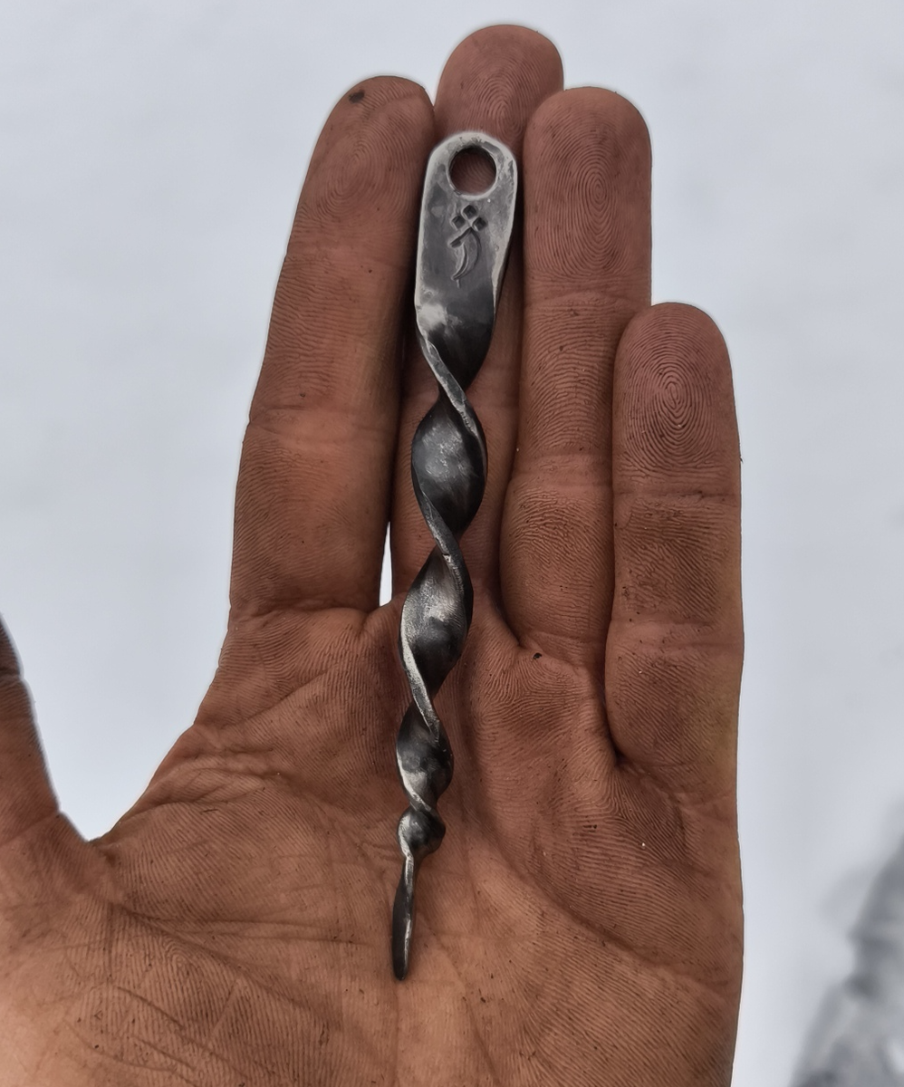 Всем привет! На связи кузнец-новичок Артём) В этот раз фотографировал мало, потому что сосед повалил у себя на участке пару деревьев, и я просто не мог не помочь ему их распилить и перетаскать. К моменту, когда дело дошло до кузницы, сил ещё и на фото уже не осталось. Ну да не суть! До Нового года осталось чуть больше недели — в следующие выходные уже пора будет наряжать ёлку) По этому случаю захотелось мне сделать кованую ёлочную игрушку! В этот раз фотографировал мало, потому что сосед повалил у себя на участке пару деревьев, и я просто не мог не помочь ему их распилить и перетаскать. К моменту, когда дело дошло до кузницы, сил ещё и на фото уже не осталось. Ну да не суть! До Нового года осталось чуть больше недели — в следующие выходные уже пора будет наряжать ёлку) По этому случаю захотелось мне сделать кованую ёлочную игрушку! Сделал я её из прутка 8 мм из 304-й нержавейки. Нержавейка — очень капризный материал, который не любит работы на холодную и с большим удовольствием ломаетс