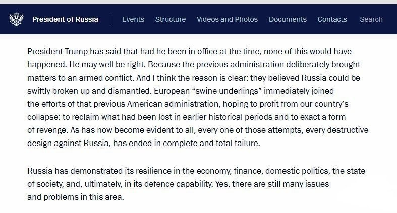 На официальном сайте Кремля громкую фразу перевели как "swine underlings".