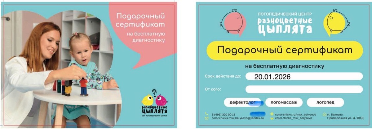 🏠🏠🏠🏠 🏳️🏳️🏳️🏳️🏳️🏳️🏳️🏳️ 🤩 Друзья, у нас отличные новости! Рядом с нашим Центром красоты и здоровья открылся ЛОГОПЕДИЧЕСКИЙ ЦЕНТР. Это прекрасная возможность для вашего ребёнка 👧получить квалифицированную помощь в развитии речи. В центре трудятся высококвалифицированные логопеды, которые помогут малышам, испытывающим трудности с речью. Если вы заметили у ребёнка проблемы с произношением или развитием речевых навыков, рекомендуем обратиться к специалистам. ❗️23 декабря приглашаем вас на праздничное открытие логопедического центра «Разноцветные цыплята» 🐥 в Беляево. 📱 Адрес: ул. Профсоюзная, д. 104Д. Приглашаем вас и ваших детей посетить центр и познакомиться с нашими специалистами! Мы подготовили вкусные угощения и массу положительных эмоций. В день открытия наши лучшие логопеды проведут бесплатную диагностику вашего ребёнка. А при покупке абонемента в этот день мы предоставляем скидку 20%! Обязательно запишитесь заранее по телефону 📞 8-495-320-00-13 или напишите в удо