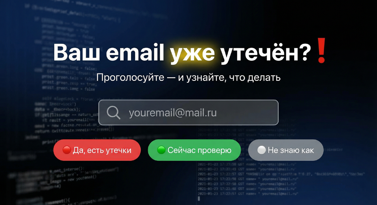 Это экспресс-диагностика риска: если ваш email в утечке, а пароль старый — мошенники уже могут зайти в Госуслуги, Сбер или почту. 1️⃣ ✅ Да, проверял(а) — и нашёл(ла) утечки