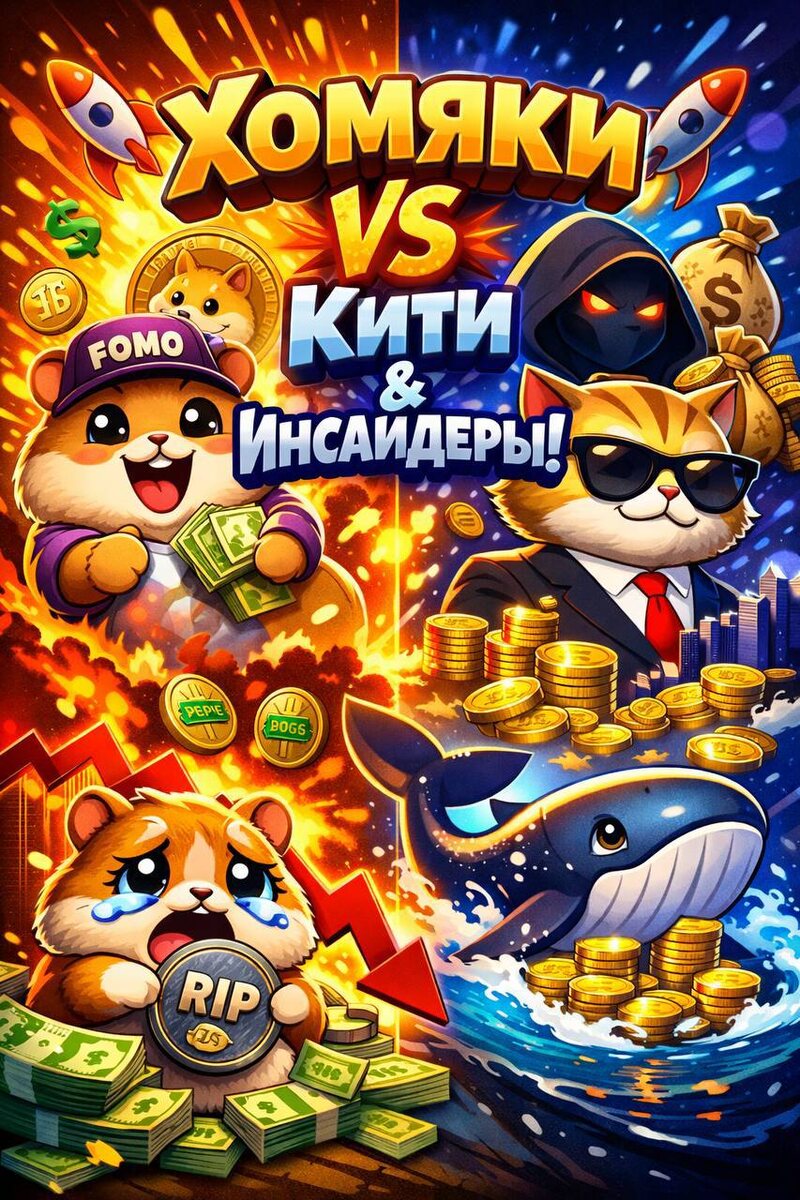 ? Вот я — нет. Сначала это был Doge. Идея уровня «ха-ха, монетка с собакой». Потом Shiba. Уже «ха-ха, но я куплю на $100 — вдруг». Потом… всё. Дальше мемкоины перестали быть приколом и стали отдельным финансовым жанром, где шутка — это только обложка, а внутри — чистая человеческая психология, жадность и ФОМО. 🐹🐱 🎰 Мемкоины — это не рынок. Это казино без крупье. Представьте игру, где: • правила меняются на ходу, • карты уже розданы, • а вам предлагают «войти по рынку, пока не поздно». Большинство участников — это не инвесторы и даже не трейдеры. Это хомяки, которые: • увидели +300% за ночь, • зашли «на чуть-чуть», • и теперь сидят в минусе, убеждая себя, что «это просто коррекция». ФОМО здесь — не побочный эффект, а основной двигатель системы. Без него мемкоин умирает. С ним — живёт ровно до тех пор, пока есть кому верить, что «ещё не поздно». 🧠 А теперь важный момент, который многие не хотят слышать Мемкоины не создают ценность. Они перераспределяют ликвидность. Деньги не
