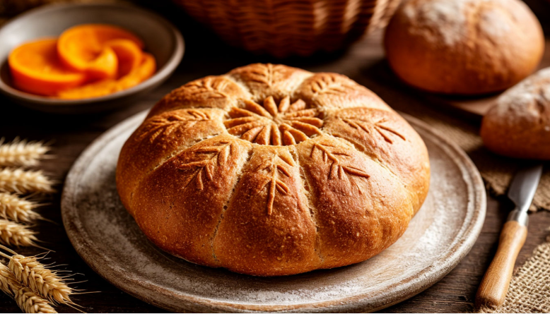 - Хлеб «Солнцеворот». Пекли небольшой круглый хлебец, на котором ножом делали крестообразные надрезы — символ солнца. Его ели в полдень всей семьёй, «чтобы солнце повернуло на лето, а зима — на мороз».