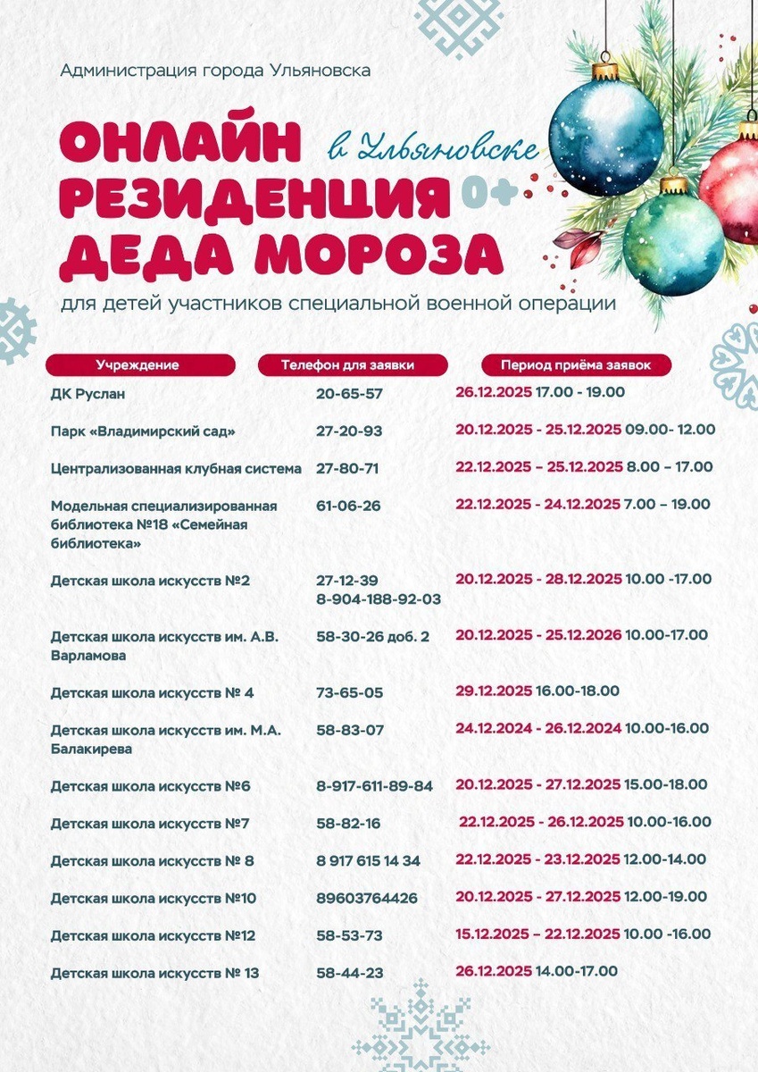 Учреждения культуры Ульяновска дают возможность организовать личную встречу с Дедушкой Морозом в онайн-формате. Родители могут подать заявку, чтоы главный зимний волшебник лично поздравил ребенка. Для этого нужно позвонить по одному из указанных номеров и выбрать удобную дату, рассказать о своем ребенке: имя, возраст, увлечения, успехи в учёбе или спорте, чтобы Дед Мороз смог подготовить индивидуальное поздравление. В назначенный день Дедушка позвонит по видеосвязи. Фото: Управление культуры города Ульяновска Наш канал в MAX