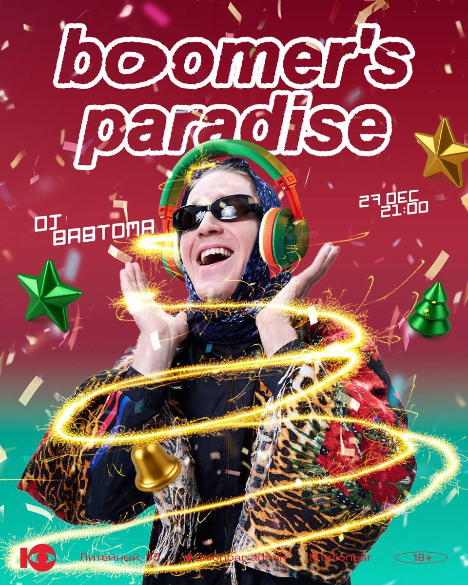 🪩 С особым гостем — в Ю прилетает BabToma, диджей с вирусной харизмой, как та самая «бабушка»: днем варит суп, ночью крутит пластинки и взрывает TikTok мэшапами. Готовимся всю ночь танцевать под хиты 80-х, 90-х, 00-х и 10-х на полной громкости и петь любимые припевы во весь голос. Атмосфера — теплая, как семейный праздник, и безумная, как лучший новогодний выпуск музыкального шоу: объятия, хор из зала, звон бокалов и та самая эйфория конца года. 🗓️ 27 декабря, начало в 21:00 💵 вход платный c 22:00 до 3:00 билеты от 700 ₽ в предпродаже онлайн и на входе и 1000₽ парный билет в предпродаже 📞 бронь 📍 Литейный просп., 55 Подписывайся на Пойдем выпьем