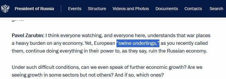 Ранее на этой неделе президент РФ, выступая на заседании коллегии Минобороны, заявил, что США при Байдене рассчитывали быстро развалить Россию, а "европейские подсвинки" тут же подключились в надежде поживиться.