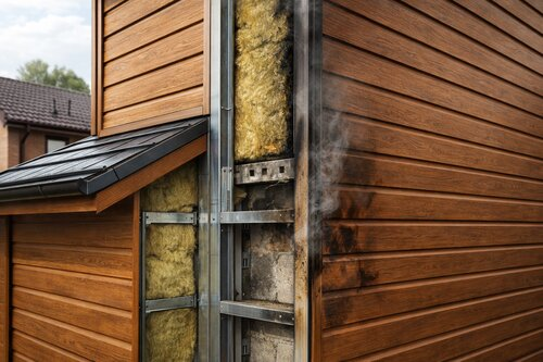 Металлический сайдинг рассматривается не только как облицовочный материал, но и как элемент системы пассивной пожарной защиты здания. Его применение напрямую влияет на сценарии развития пожара по фасаду, скорость распространения пламени и устойчивость ограждающих конструкций в начальной фазе возгорания. Поэтому при выборе фасадного решения ключевое значение имеют подтверждённые классы горючести и поведение материала при воздействии высоких температур. В основе металлосайдинга лежит холоднокатаная оцинкованная сталь, относящаяся к классу НГ — негорючие материалы. Это означает отсутствие воспламенения, нулевую способность поддерживать горение и отсутствие распространения пламени по поверхности. В отличие от полимерных и композитных панелей, металл не формирует дополнительную пожарную нагрузку и не ускоряет вертикальное развитие пожара по фасаду. Производство металлического сайдинга регламентируется требованиями ГОСТ 30244 и СП 2.13130. В соответствии с ними оцинкованная сталь классифици