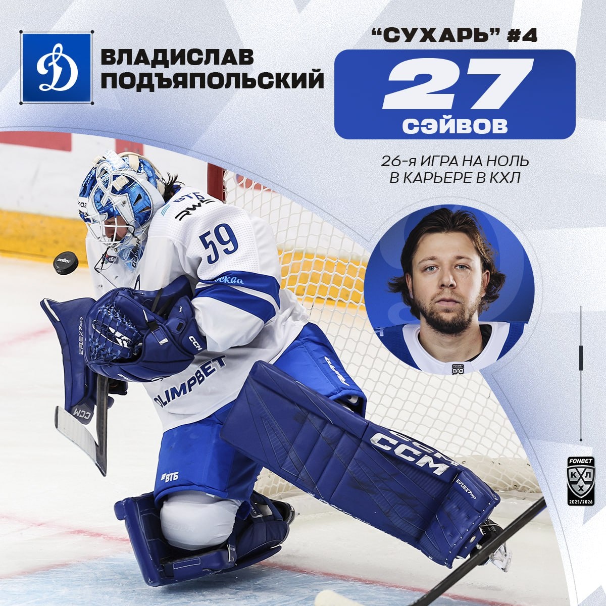 🔵 Владислав Подъяпольский в третий раз в карьере сыграл на ноль в двух играх подряд!