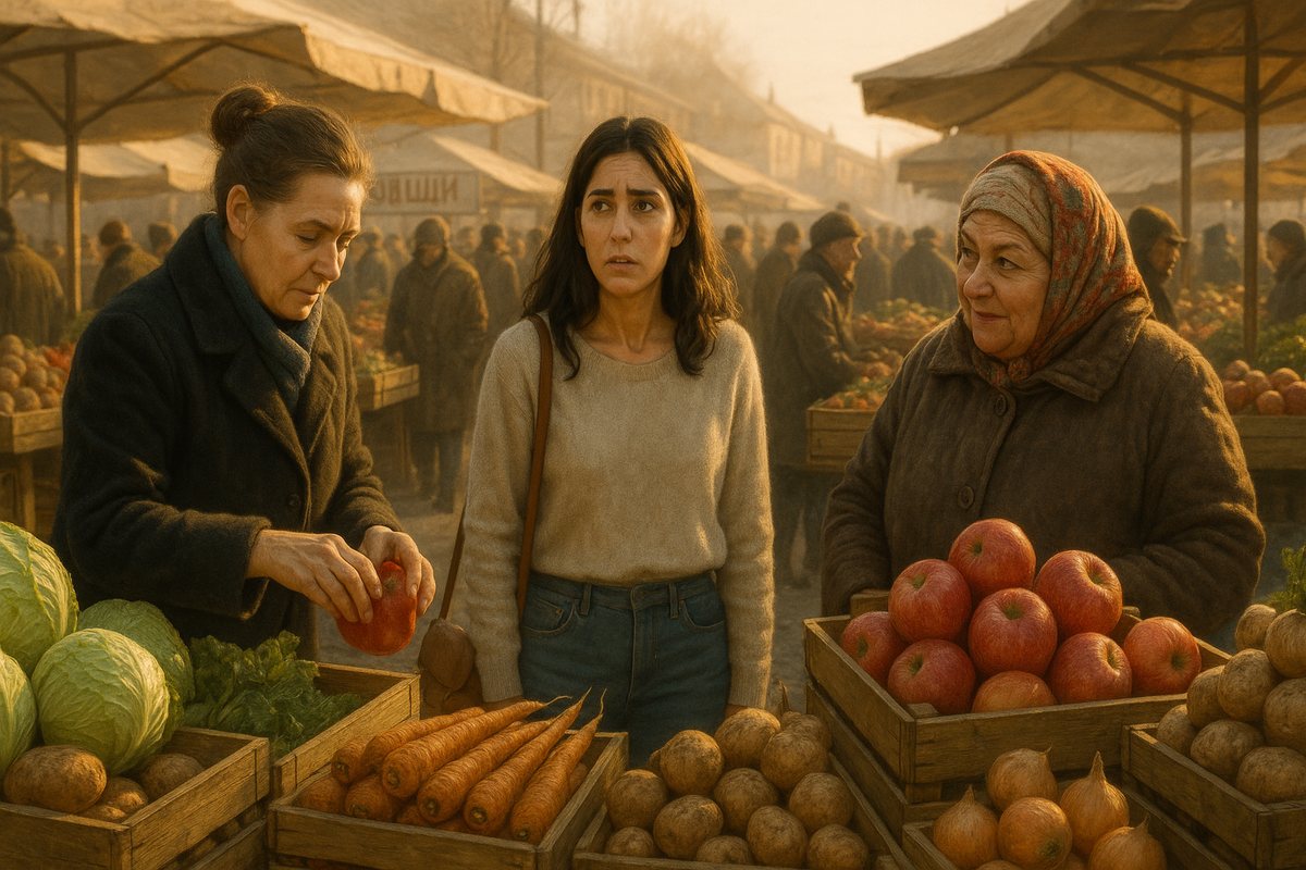 Виктория движется между прилавков с точностью. Она знает каждого продавца по имени, но она не ожидает, что они помнят её предпочтения. Она просто говорит четко: