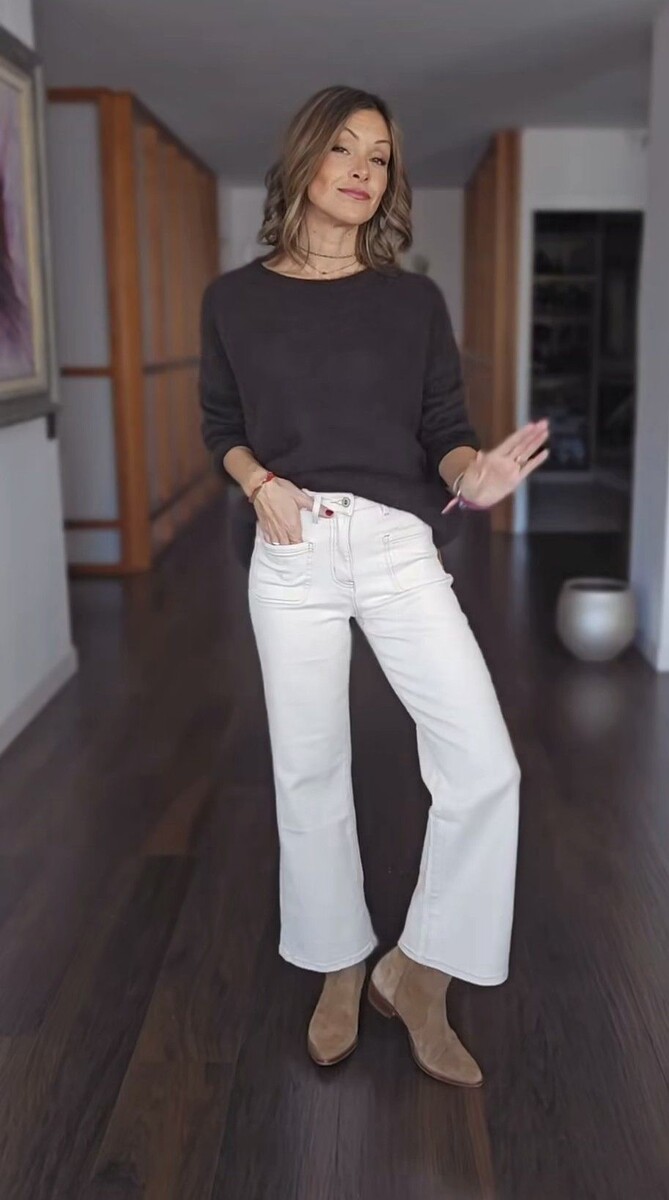 Забудьте, что белое носят только с мая по сентябрь. Это главное заблуждение. Зимой белые джинсы с серым кашемировым свитером, черными сапогами-ботфортами и объемным пальто - это невероятно стильно. Они разбивают монохром зимних образов, добавляют свет. Осенью - с коричневым кожаным жакетом, бордовой водолазкой и сапогами челси. Они - связующее звено между темными верхами и обувью. Дайте им шанс выйти за рамки пляжного сезона.