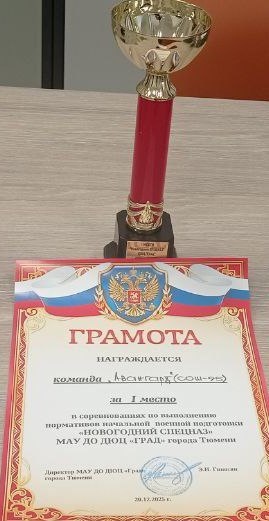 ". В соревнованиях приняли участие 4 команды и младшие воспитанники в личном зачёте. На соревнованиях обучающиеся выполняли нормативы по разборке-сборке АК-74, снаряжении магазина АК-74 патронами, стрельбы из интерактивного оружия. Места распределились следующим образом: 3 место - команда "Высота 89"( СОШ-89), 2 место - команда "Град" (ДЮЦ "Град"), 1 место - команда "Авангард" (СОШ-95). При проведении мероприятия участники смогли ознакомиться с выставкой вооружения, предоставленного ТООО "СОЮЗ ВОЕННЫХ ИНЖЕНЕРОВ". По окончании мероприятия все участники награждены медалями, а в командном зачёте кубками от помощника депутата Тюменской областной Думы Санникова Дмитрия Александровича. Поздравляем наших победителей!