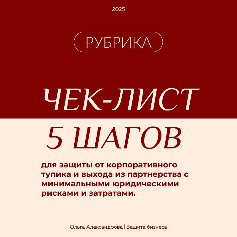». Отсутствие четкого регламента гарантирует финансовые потери и судебный конфликт. Мы рассматриваем два сценария, определяющих уровень ваших рисков и затрат: 😎Сценарий «Регламентированный выход» (при наличии партнерского соглашения). Ваше соглашение служит обязательной инструкцией. Процесс не требует участия переговорщиков и сводится к техническому выполнению условий: 😎Инициирование. Направление официального письменного уведомления о намерении выйти в сроки, установленные Соглашением (например, за 60 дней). 😎Оценка. Применение заранее утвержденного механизма определения стоимости доли (независимый аудит, оценка чистых активов за N лет). 😎Отчуждение. Выплата установленной суммы и регистрация перехода доли. Процедура предсказуема, сроки контролируются, а рыночная стоимость доли защищена. 😎Сценарий «Конфликтный выход» (при отсутствии партнерского соглашения). Здесь вы попадаете под действие общих норм корпоративного законодательства, где ваш бизнес не защищен. 😎Чек-лист, чт