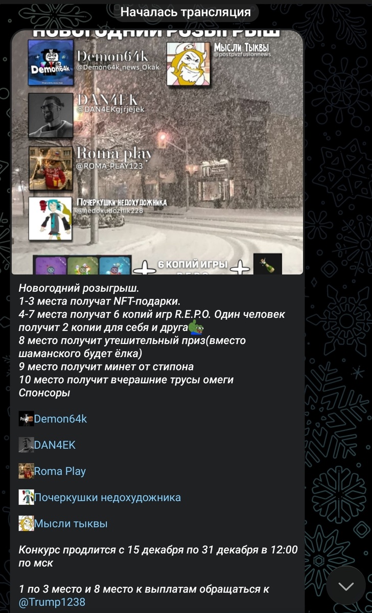 А также в моём телеграм-кАнале проходит розыгрыш на 3 NFT и 6 копий игры R.E.P.O