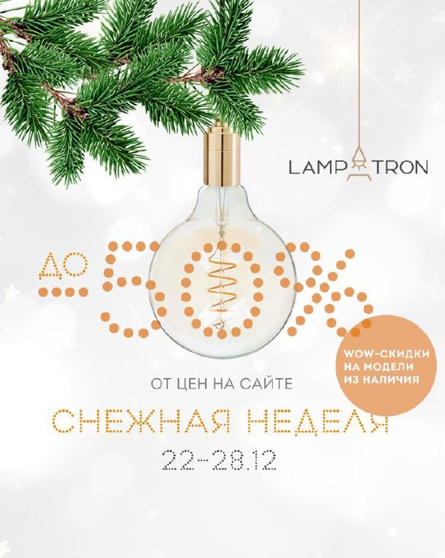 ! УРА! СНЕЖНАЯ НЕДЕЛЯ продолжается до самого нового года и у вас еще есть возможность воспользоваться супер СКИДАМИ: -20% на ВСЕ без исключения модели из нашего каталога и до -50% на ВСЕ модели в наличии. Просто укажите специальный ПРОМОКОД — «SNOWEEK25» в корзине при заказе на сайте и смело пользуйтесь вашей скидкой в эти предпраздничные дни! А дополнительно мы дарим сказочную новогоднюю скидку до -50% на все наши модели из НАЛИЧИЯ! Получите каталог актуальных моделей на складе в Москве на сайте LAMPATRON.RU Успейте разобрать модели из наших запасов до Нового Года, пока это не сделал другой Дед Мороз! 🎅 Расскажите о Cнежной Неделе своим друзьям и тем, кому может быть интересен подбор дизайнерского освещения на особо выгодных условиях! 🎇 C наступающими, и всего вам самого светлого! @LAMPATRON - магазин новогоднего дизайнерского освещения.