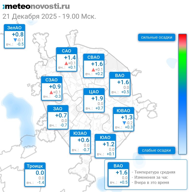 В 19:00 в Москве было от -0.2°C до +2.3°C, средняя температура +1.2°C #погода #Москва #зима #температура #21декабря #воскресенье