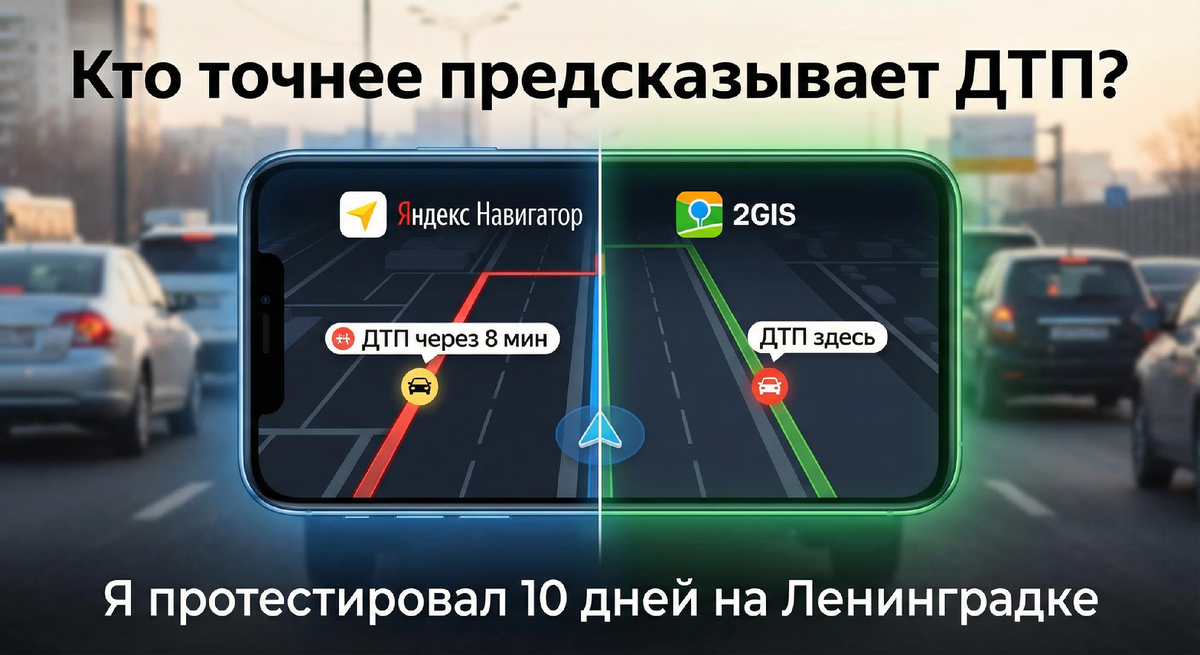 Но настоящая проблема — внезапные ДТП, которые превращают 40 минут в 2 часа. Чтобы понять, кому доверять, я 10 дней подряд ездил с двумя телефонами: