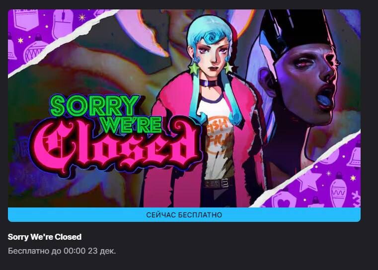 🤩Игра "Sorry We’re Closed" раздается бесплатно в Epic Games Store на сегодня