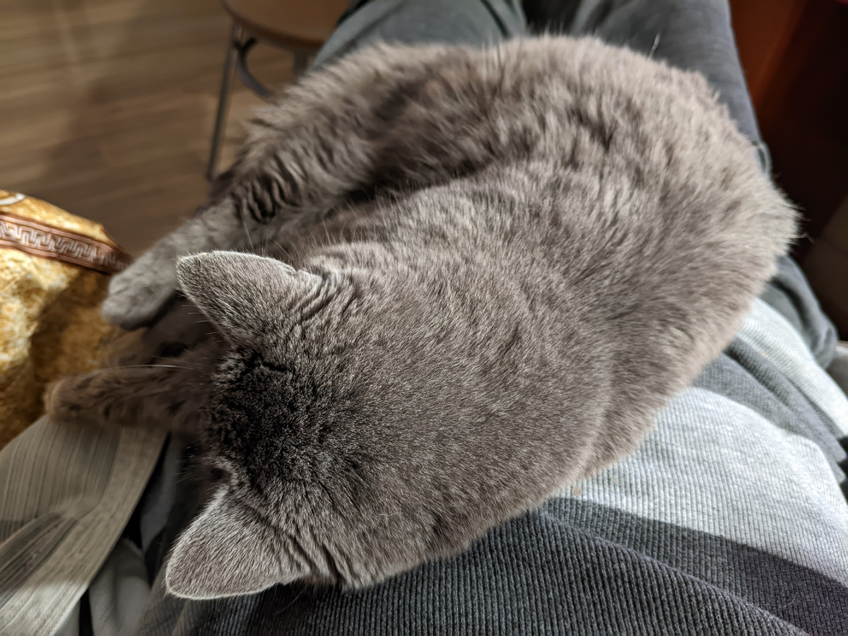 Вчера, после рыночных закупок, работали за компьютером не покладая рук и лап. С утра погода хорошая, но я-особо-то её и не ощущал, после завтрака занимался документами, завтра надо съездить в суд, передать возражения на апелляцию, та сторона никак не уймётся, всё еще пыхтят, стараются победить хоть как-то, хоть где-то. Небо было голубым, с пестрыми тонкими белоснежными облаками. На завтрак были домашние блинчики с творогом и изюмом. А это Дымка, она в спячке, в тазике, в ванной. А это наш розарий, там еще есть немного свежих роз, но они уже не очень фотогеничны. А это наш пряничный домик в красивом местечке полуострова Крым, у самой транспортной развязки "Ялтинское кольцо", что лежит на трассе Таврида у славного города Севастополя. А это зимнее крымское небо, несмотря на то, что оно зимнее, оно высокое и светлое. А это сосед Васька, для новеньких подписчиков моего канала-дневника проведу его жизнеописание. Соседи не местные, здесь живут только с весны до осени, в остальное время приез