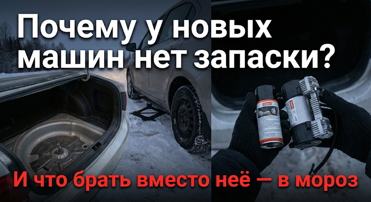 Но в багажнике — ни запаски, ни докатки. Только пакетик с надписью “ремкомплект” и маленький компрессор на 12V. В ноябре, на трассе под Тверью, при –15°C, лопнула боковина.