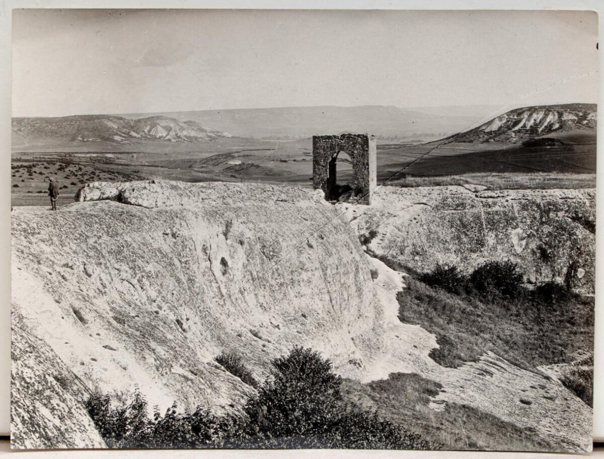 1928 г. Размер: 11х14,5 см, 11,4х16, 16,7х12,2 см Из фондов: Государственный Исторический Музей (ГИМ), Москва. Номер ГИМ: ГИМ 89430/5165, ГИМ 89430/5160, ГИМ 89430/5164 Укрепление Кыз-Куле было частью системы обороны Феодоро XV века. В систему входили также крепости Каламита, Чоргунская башня, Керменчик и Сандык-Кая, перекрывавшие ключевые маршруты генуэзцев. Кыз-Куле выполняла оборонительные функции и служила резиденцией правителя Феодоро. Современные историки датируют её постройку первой половиной XV века. Ранее предполагались более ранние даты, связывая крепость с турками, Византией или черкесами. В 1933 году Усеином Боданинским обнаружена христианская часовня XV века. Название Кыз-Куле, по Кеппену, связано с именем Кути-Бея или Кутлуг-бея. Башня расположена на плато Топшана, северо-западнее Эски-Кермена. Плато окружено обрывами высотой до 20м. #этнография #история #архитектура #Феодоро #ЭскиКермен #КызКуле