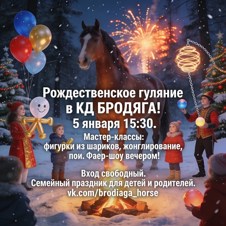 "🎉5 января в 15:30 пройдёт Рождественское семейное гуляние в конном дворе «Бродяга».