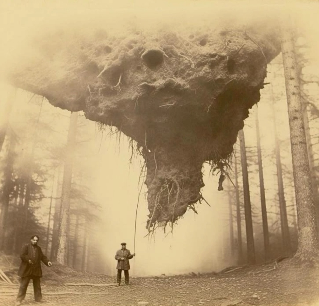 Тот , якобы , забрел на странную поляну в тайге и увидел такое что волосы на голове встали дыбом. Огромный вывал леса, а по центру ,