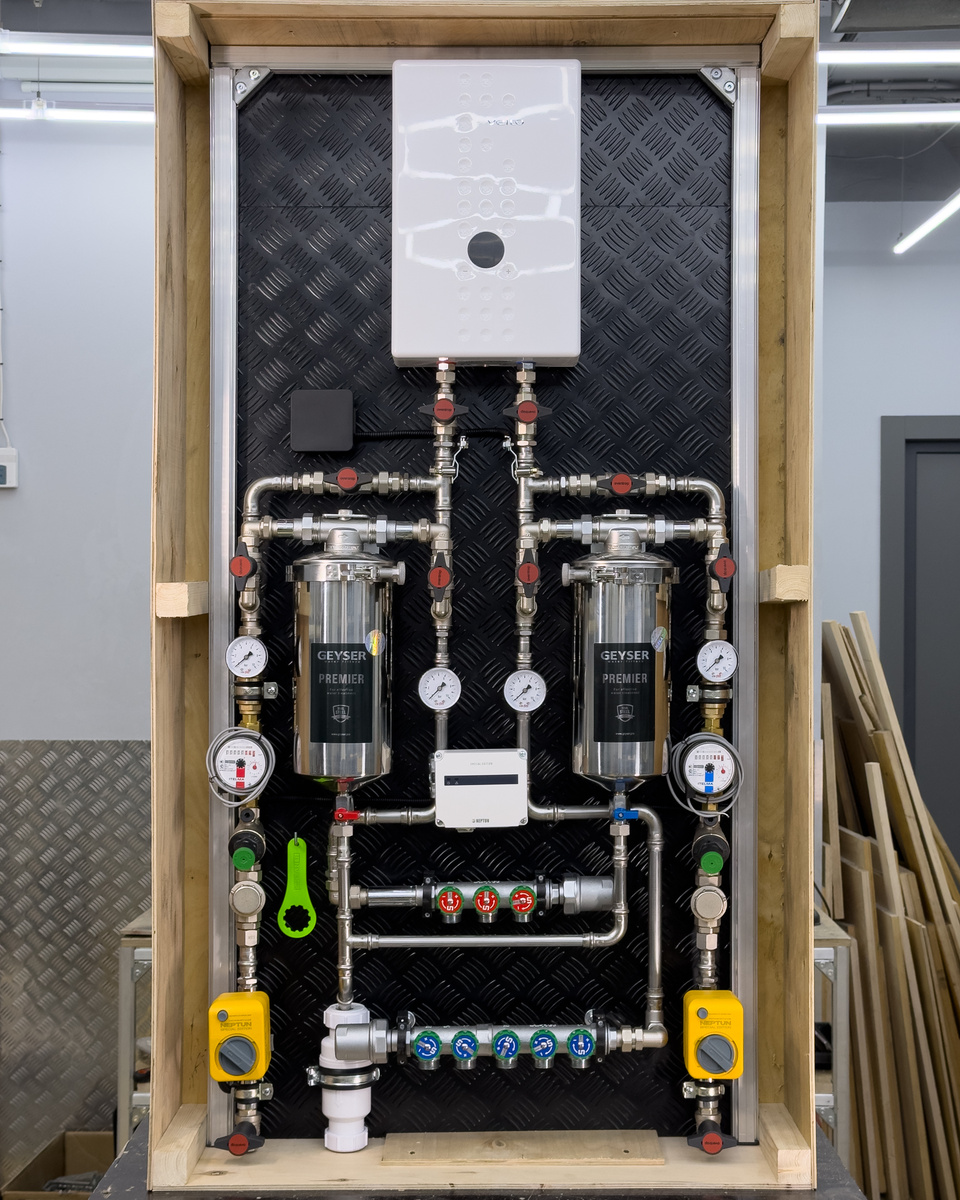Инженерная сантехника редко бывает «красивой» на словах. Но именно в таких, на первый взгляд обычных узлах, скрывается настоящая логика комфорта: когда ничего не бросается в глаза, зато всё работает тихо, стабильно и предсказуемо. Этот узел — как раз из таких историй. Сегодня всё больше квартир получают воду снизу — из МОПа, через трубы из шитого полиэтилена. И это не проблема, а удобство. Не нужно тянуть трассы через потолок, городить лишние метры труб и забирать полезное пространство. Вода заходит снизу — узел логично принимает её там же, без компромиссов по надёжности. На вводе — шаровые краны Oventrop. Их здесь много: всего 10 штук, и это не избыточность, а следствие сложной, но продуманной схемы фильтрации. Каждый кран — это контроль, сервис и возможность обслуживать систему без отключения всей квартиры. Сердце этого узла — магистральные фильтры Geyser Premier BB10. Они выбраны не ради «премиального вида», а ради результата. Картриджи 5 микрон отсекают всё, что может навредить тех