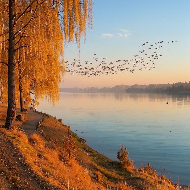 И гуси, и ноябрь, опавшие листья, мой скорый отъезд... За всем этим начиналась новая неизвестная жизнь...Что там будет в ней? Все это вызвало чувство щемящей, тревожной грусти... Но день был так прекрасен,и он только начинался... Незаметно мы перешли к красному, потом вспомнили про удочки, закинули... Не клевало что-то совсем в этот день. Красное тоже быстро закончилось... Но не беда, прогулка удалась. Ведь Пушкин стал ещё ближе и понятнее. 15 ноября того же года я сошёл с поезда на станции Калуга-2. У меня было с десяток мест багажа, а стоянка поезда всего две минуты. Но мир не без добрых людей. Попутчики помогли мне оперативно выгрузиться на платформу, где уже поджидали меня мои сыновья -Алексей и Александр На улице было ветрено, моросил мокрый снег. Температура около нуля градусов. На лице моем для прикола были усы. Повеселить ребят. На голове соломенная шляпа. Просто не хотел помять её в багаже и вёз отдельно. В руках- клетка с бело-голубым моим товарищем попугаем Лёней. Вот так я и вернулся в тот год из тёплых стран.Гуси-туда,а я -обратно... 20.12.25.
