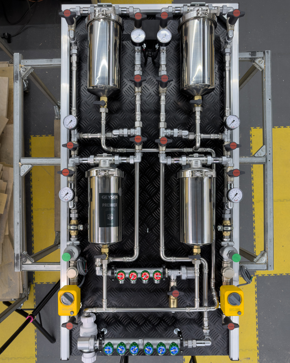 Узел водоразбора — это не «коробка с кранами», а полноценная инженерная система, сравнимая по сложности с автомобилем. Здесь важны не только компоненты, но и логика, обслуживание и запас по надёжности. Этот узел — как раз из таких историй. Если вы следите за нашими публикациями, то, возможно, помните старшего брата этого узла. Он был ещё мощнее за счёт встроенного проточного водонагревателя. Здесь проточника нет — но это не минус. Этот узел спроектирован так, что при необходимости горячая вода может приходить из другого узла и дальше спокойно распределяться по всей квартире. Система выполнена в трёхчетвертном диаметре, чтобы ни напор, ни расход не были узким местом. Это особенно важно для мощных душевых систем, где вода должна течь ровно так, как задумано, а не «по остаточному принципу». Первое, что бросается в глаза — количество арматуры. И это не визуальный обман. Только запорных кранов здесь 15 штук. Да, пятнадцать. Часть из них — основные, часть обслуживает магистральные фильтры и