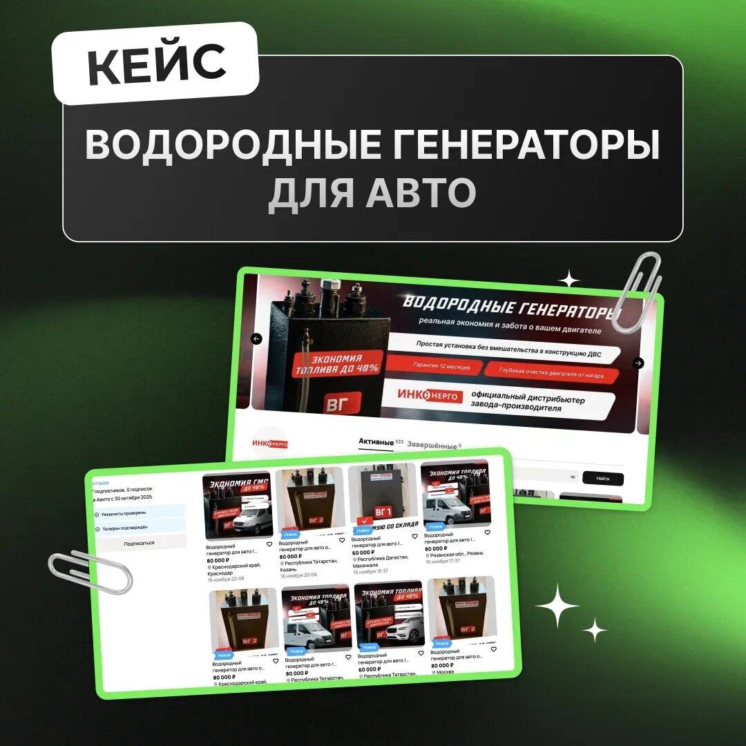 Водородные генераторы для авто Компания: ИНКО-ЭНЕРГО Ниша: водородные генераторы для авто ГЕР: Рязань и 50 городов РФ с наибольшим спросом Запрос клиента 1)Сделать упаковку под 3 разных ЦА: легковые, джипы и грузовые авито 2)Увеличить конверсию из просмотра в контакт 3)Обойти основного конкурента Определение ЦА и формирование УТП Основные ЦА: частные владелец авто и автопарки. Основные УТП: - Экономия топлива до 40%т - Гарантия 12 месяцев - Увеличение мощности двигателя до 21,5%; - Снижение расхода масла и температуры сгорания - Глубокая очистка двигателя от нагара в камере сгорания, на поршневых кольцах и клапанах - Сокращение вредных выбросов (СО, СН) до 90% – забота об экологии - Стабильная работа двигателя на всех оборотах, более плавный и тихий ход Все УТП отразили в виде инфографики на фото и в тексте объявлений. Аналитика спроса и конкуренции Уровень спроса и конкуренции оценивали в каждом из 50 городов по следующим запросам: - водородный генератор авто - водородный ге