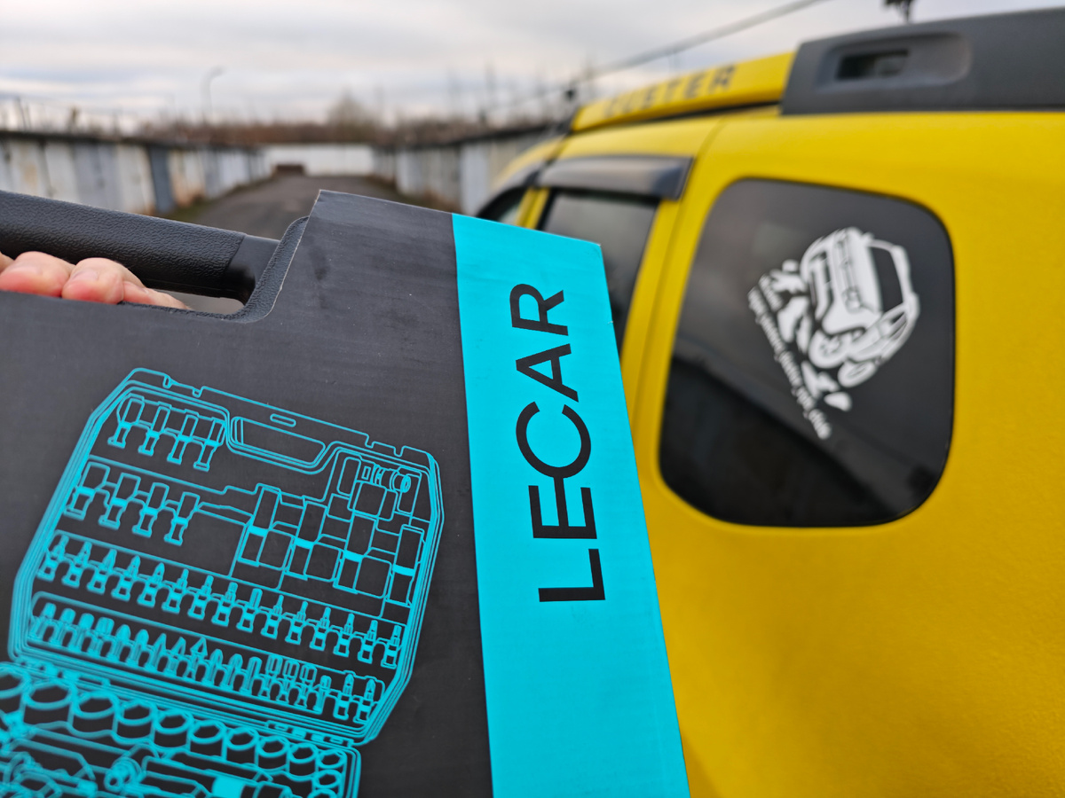 Всем привет! Когда в багажнике лежит хороший качественный набор инструментов, то чинить машину и быстрее и гораздо приятнее. Я достаточно часто ремонтирую автомобиль именно в автосервисах, но вот аккумулятор меняю уже сам. Да и мелкие работы периодически тоже сам произвожу. Без необходимых инструментов и головок не смог нормально поставить реношную планку, так как было лень снова откручивать гайки. Но теперь будет проще, ведь приобрёл универсальный набор инструментов на 94 предмета фирмы Lecar с артикулом LECAR000042814 ! Выполнен из хром-ванадия, можно разделить его на две составляющие-трещотка и биты 1/2, трещотка и биты 1/4. Для мелких работ можно использовать маленькую трещотку. Ну и где труднодоступные места. А для более серьёзных-ключи или трещотку большую. Плюс удобно, что есть как удлинители обычные, так и гибкий. В общем взял большую трещотку, открутил клемму 13ой битой. Маленькой трещоткой и 10ой битой открутил планку-крепление. Очень удобно, когда биты длинные, ввиду большо