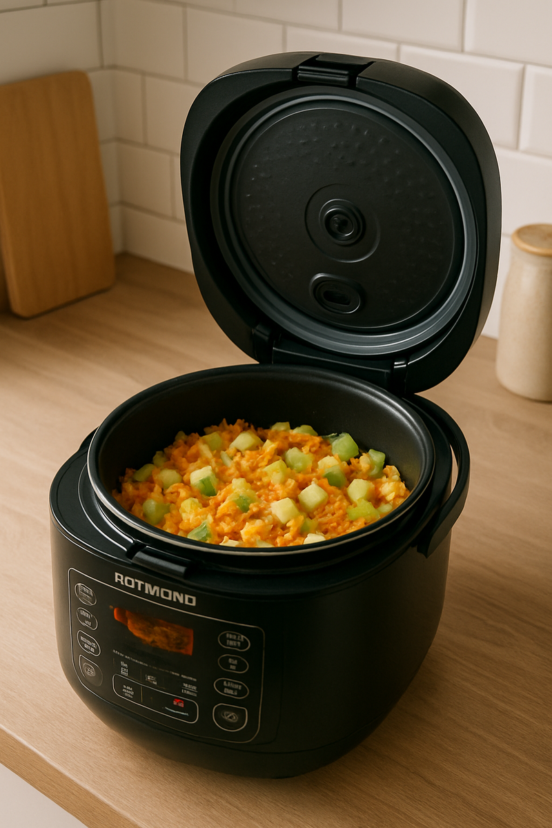 Готовить в открытой мультиварке можно, но с важными оговорками. Вот что нужно знать: ✅ Когда можно готовить без крышки: 1. Для жарки/томления (чтобы жидкость испарялась): - Режимы «Жарка», «Выпечка» — крышку можно снять для: - Обжаривания лука/мяса - Приготовления глазуньи - Пассеровки овощей - *Пример*: чтобы картошка фри получилась хрустящей. 2. При добавлении ингредиентов: - Кратковременное открытие во время готовки допустимо. 3. Для некоторых десертов: - Безе, коржи для торта — если нужна сухая корочка. ⚠️ Ограничения и риски: 1. Запрещено в режимах под давлением (если есть функция скороварки) — опасно! 2. Увеличивается время готовки — без крышки температура распределяется неравномерно. 3. Может сработать защита от перегрева — некоторые модели автоматически выключаются при открытой крышке. 🔥 Как безопасно готовить без крышки: 1. Уменьшите мощность на 20-30% (если есть регулировка). 2. Чаще помешивайте пищу. 3. Используйте только разрешённые режимы («Жарка», «Выпечка»). 4. Не оста