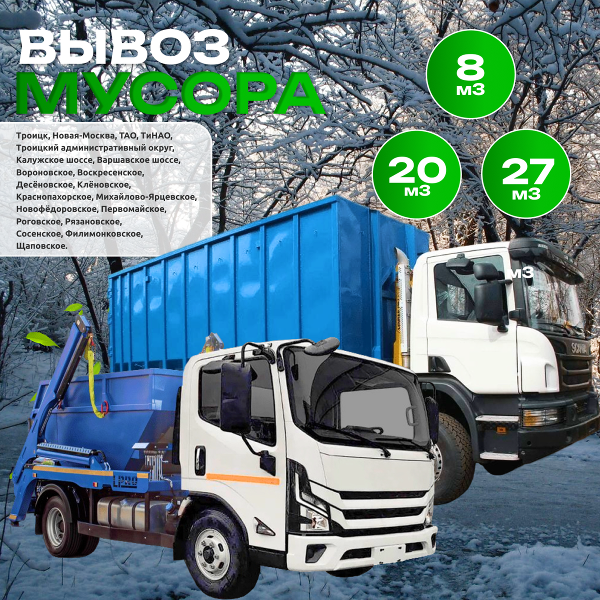 Компания «Мосмусор» предлагает комплексные решения для поддержания чистоты и порядка на территории города Троицка и прилегающих районов. Наша компания стремится обеспечить эффективное и надежное удаление отходов, минимизируя воздействие на окружающую среду.