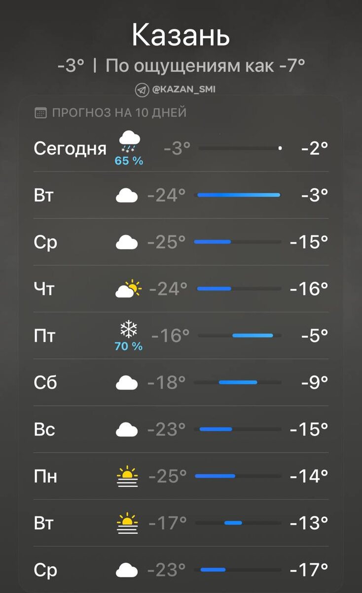 🥶 Сильные морозы придут в Казань