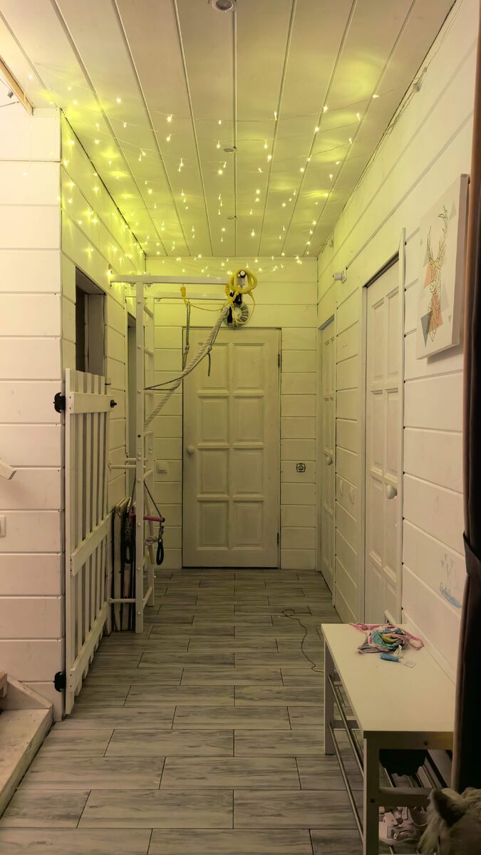 Гирлянды висят у нас круглый год и выполняют роль второго света темными вечерами. В этом году муж поправил освещение в коридоре, завел гирлянду в гостиную и еще одну повесил в зону кухни.