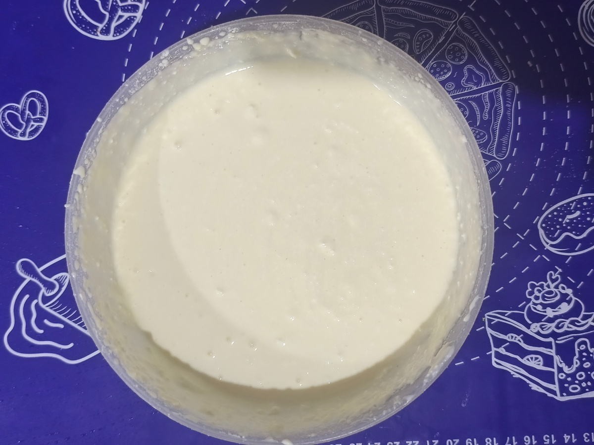 Взбиваем Бендером творог, яйца и 150мл молока до однородности. Добавляем подсластитель, крахмал, и перемешиваем.