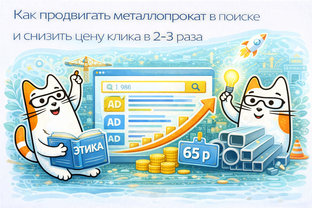 Рынок металлопроката — один из самых сложных для интернет-продвижения. Высокая конкуренция, перегретый аукцион в рекламе и огромный объем семантики делают любые ошибки дорогими. В этом проекте задача была двойной: нарастить органический трафик и одновременно снизить стоимость клика в Яндекс.Директ без потери качества заявок. Клиент работает с широким ассортиментом металлопроката: арматура, профильные и круглые трубы, уголок, рельсы, судостроительная сталь и другие позиции. Всего — около 20 крупных товарных направлений. На старте мы увидели типичную картину для ниши: Дополнительной задачей было системное SEO-продвижение с выходом в топ-10 Яндекса по ключевым товарным и коммерческим запросам. В металлопрокате нельзя просто собрать семантику и запустить рекламу.