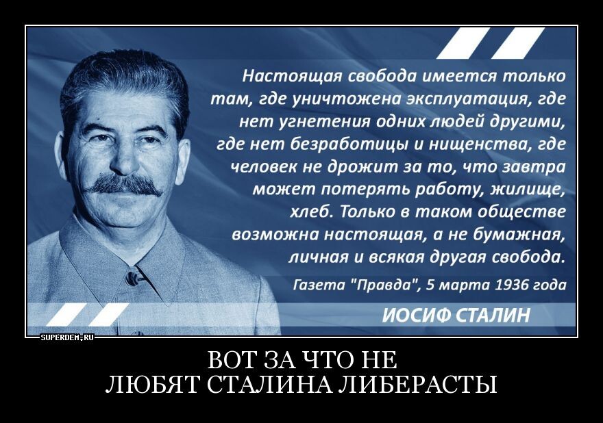 Сегодняшняя десталинизация – это страх либералов перед ответственностью за совершенные ими преступления. И ничего больше. Они мстят Сталину за то, что Сталин был олицетворением справедливости. Может быть, жестокой, может быть, излишне жестокой. Но понятной. Они ненавидят Сталина не за то, что в нем было плохого, они ненавидят Сталина за то, что он служил России, а не за то, что он убивал людей. либералы больше всего ненавидят Сталина не за то, что в его даче под Москвой он посадил 60 тысяч деревьев в то время, когда был голод. Хотя десять лет эти деревья сажали в Кунцево. Они ненавидят его за то, что он лег в могилу в штопаных носках. Когда понадобилось что-то на него надеть, выяснилось, не обтрепанных кителей у него нету. Вот это является главным предметом лютой ненависти. Потому что они не понимают, как человек может жить не ради своего кармана, а ради общего блага. Именно поэтому Сталин – диктатор и мерзавец, а Гайдар – святой