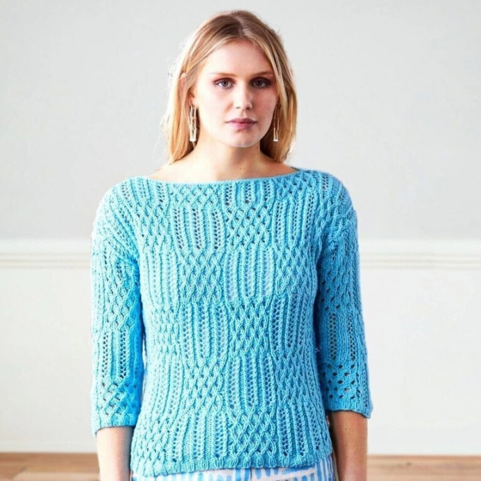 Для вязания нам понадобится 500 (650) ярко-бирюзовой пряжи: 100% хлопок; 90 м/50 г. Спицы № 3,5 и 4.