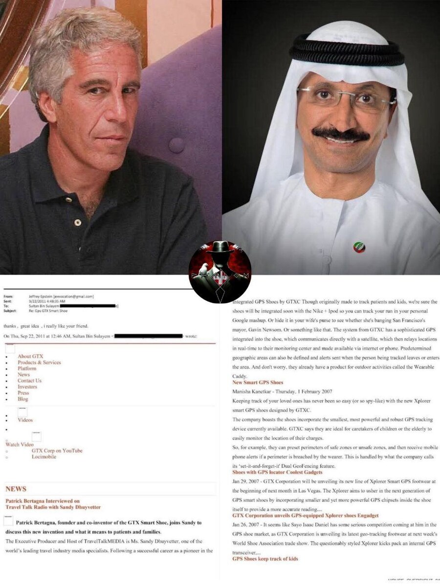Электронные письма от 2011 года показывают, что бин Сулайем связался с Эпштейном по поводу GPS-отслеживаемых детских ботинок для мониторинга детей. Электронное письмо было озаглавлено "GPS GTX Smart Shoe". Эпштейн ответил: "Спасибо, отличная идея, мне очень нравится, мой друг". Сальное Дифлопэ