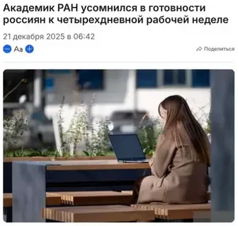 «Чем себя занять?» — почему в России не вводят четырёхдневку: мнение эксперта Мечтаете о четырёхдневной рабочей неделе? Не спешите радоваться: по мнению авторитетных экспертов, такой график может обернуться не отдыхом, а головной болью — и для работников, и для экономики. Разбираемся, почему Россия пока не готова к радикальному сокращению рабочих дней. Важно! Хотите быть в курсе самых свежих новостей? Подписывайтесь на наш Telegram‑канал — там ещё больше полезной информации и оперативных обновлений!