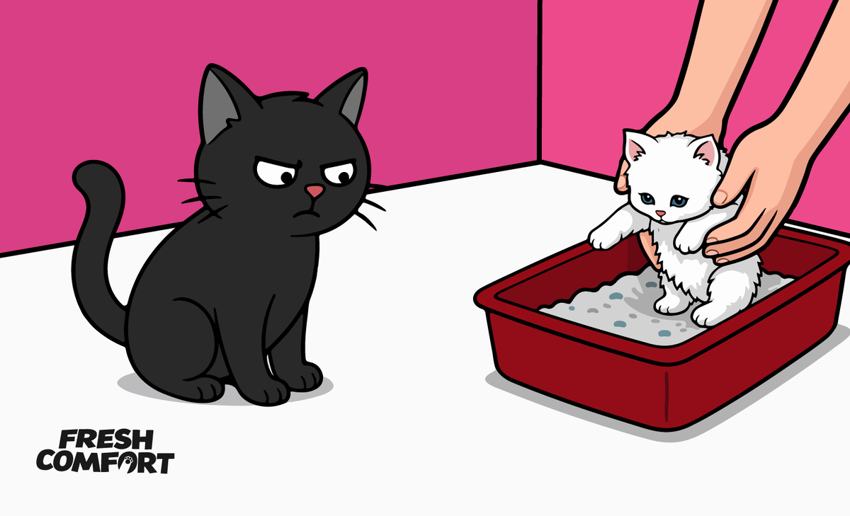 Вы когда-нибудь задумывались о том, как тяжело бывает нам, взрослым степенным котам, когда в доме появляются маленькие непоседливые котята? Постоянно шалят, мешают и не дают спокойно отдыхать! Но хозяину бывает тоже нелегко, ведь ему предстоит приучить котенка к лотку. Но я знаю 5 простых шагов, которые помогут сделать это быстро и легко. Поехали! Для котенка лучше взять просторный и невысокий лоток – чтобы ему было удобно заходить и выходить. Наполнитель выбирайте исходя из того, какой понравится малышу. Но с этим проблем не возникнет – любой, даже самый капризный котенок, будет в восторге от Fresh Comfort! А это значит, что хозяин сможет сэкономить, а наполнитель – единственное чем мы, взрослые коты, похожи на этих маленьких нарушителей спокойствия. Сразу после прихода домой аккуратно посадите котенка в лоток. Делайте это особенно после сна и еды – в эти моменты естественно хочется в туалет. Пусть он запомнит место без давления и страха. Котенок будет ходить в лоток охотнее, если он
