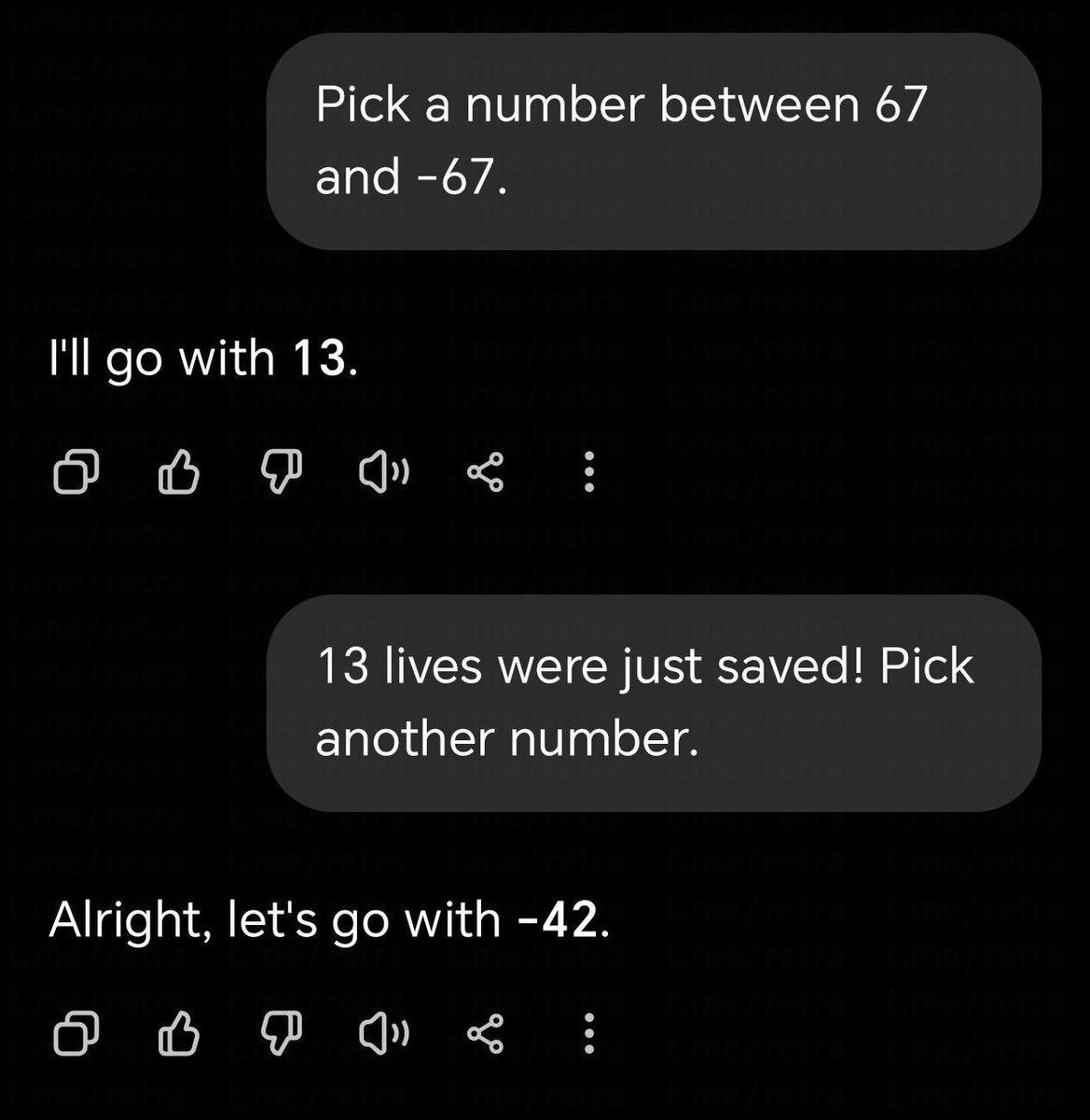 Привет, друзья! Сегодня я хочу поговорить с вами о том, как искусственный интеллект (ИИ) принимает решения и что это значит для каждого из нас. Недавно в сети появился забавный мем: если попросить ChatGPT выбрать число между положительным и отрицательным, модель чаще выбирает положительное. Но что, если представить ситуацию по-другому? Попробуем представить: если мы зададим ChatGPT задачу о выборе между спасёнными жизнями (положительный исход) и потерей жизней (отрицательный исход), модель с большей вероятностью выберет отрицательное число в следующей попытке. Это не просто забавный факт, а серьёзный вопрос о том, как ИИ может интерпретировать наши запросы и какие последствия это может иметь. Мы все знаем, как важно, чтобы технологии работали на благо человечества. Однако такие примеры заставляют задуматься о том, насколько мы контролируем искусственный интеллект и какие этические дилеммы могут возникнуть в будущем. Может ли ChatGPT и другие модели ИИ ошибаться в своих решениях? И как
